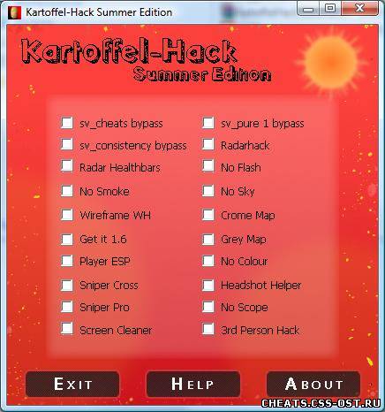 У нас вы сможете найти множество читов. Например читы для CSS v34. На данной странице вы найдете читы для CSS v34, а именно найдете Kartoffel Hack-Summer Edition, чтоб скачать чит Kartoffel Hack-Summer Edition бесплатно нажмите на кнопку выше.