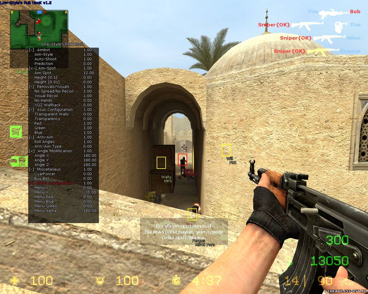 У нас вы сможете найти множество читов. Например читы для CSS v34. На данной странице вы найдете читы для CSS v34, а именно найдете Low-Style's PuB v1.2, чтоб скачать чит Low-Style's PuB v1.2 бесплатно нажмите на кнопку выше.