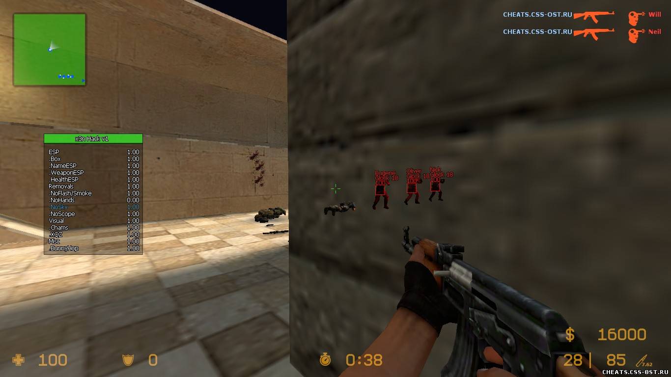 Сегодня я хочу вас ознакомить с новым читом x3n Hack v1 для старой версии ксс V34, В чите есть много интересных и полезных функций таких как Esp, Wallhack, xqz, flash, smoke, sky, hands, scope, bunnyhop. Чит обходит многие популярные серверные античиты так что бана можно не боятся, Если вы хотите начать играть читом x3n Hack для ксс v34, просто скачайте архив, извлеките содержимое архива в любую папку, запустить чит x3n.exe, вам осталось только включить cs source v34 и зайти на сервер. Меню чита открывается нажатием delete - вкл, insert - выкл. Удачной игры.