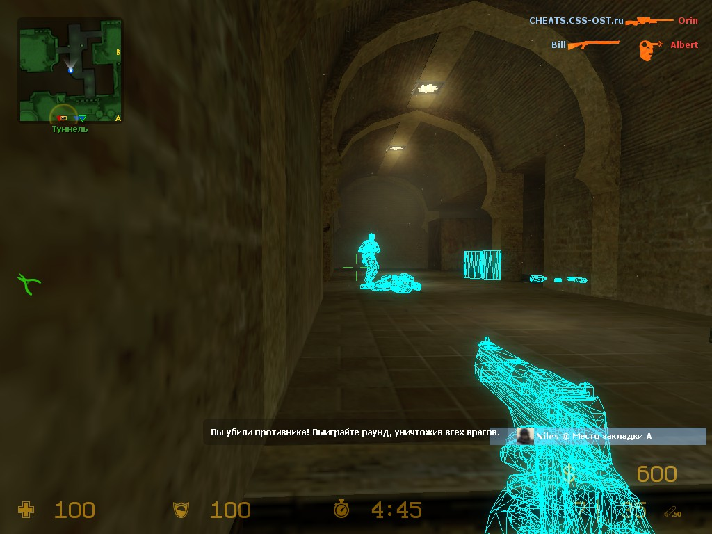 Как включить? 1.Запустить OST v1.1 2.Запустить css 3.Зайти на сервер 4.Wallhack On=Page Up 5.Wallhack Off=Page Down Подробную информацию о чите монжо узнать нажав info