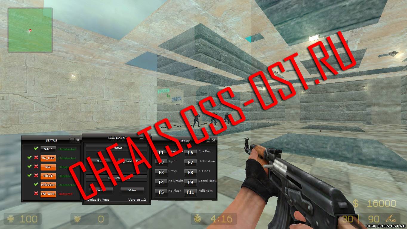 У нас вы сможете найти множество читов. Например читы для css v87 + 88. На данной странице вы найдете читы для css v87 + 88, а именно найдете CSS HACK V1.2 для css, чтоб скачать чит CSS HACK V1.2 для css бесплатно нажмите на кнопку выше.