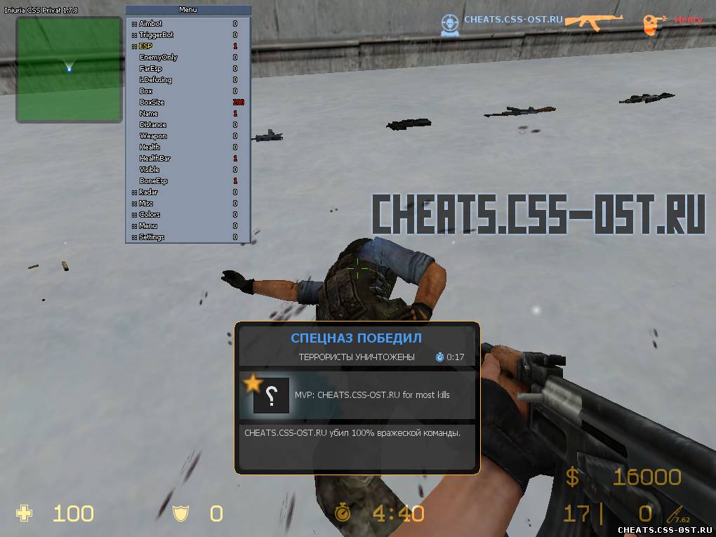 У нас вы сможете найти множество читов. Например читы для css v87 + 88. На данной странице вы найдете читы для css v87 + 88, а именно найдете Iniuria 1.7.8, чтоб скачать чит Iniuria 1.7.8 бесплатно нажмите на кнопку выше.