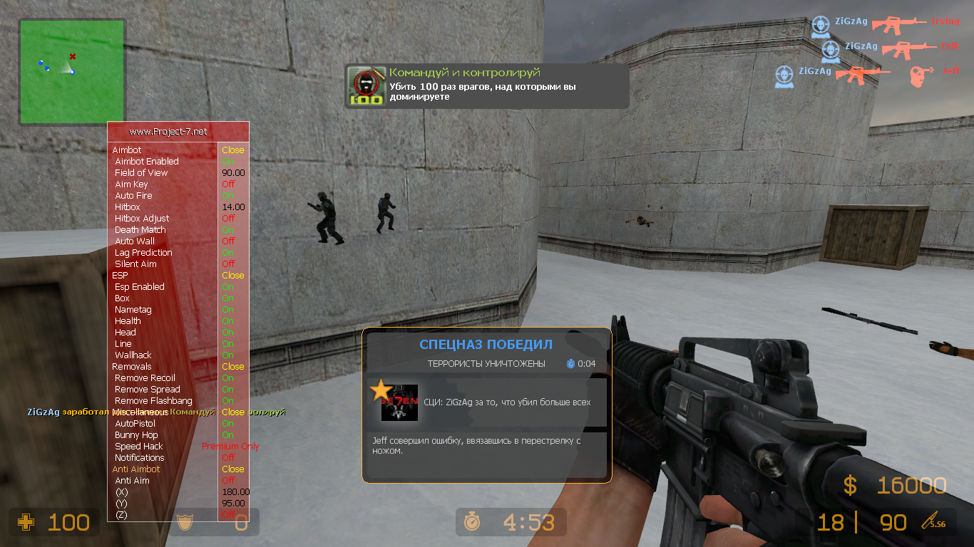 У нас вы сможете найти множество читов. Например читы для css v87 + 88. На данной странице вы найдете читы для css v87 + 88, а именно найдете wallhack + aimbot для css, чтоб скачать чит wallhack + aimbot для css бесплатно нажмите на кнопку выше.