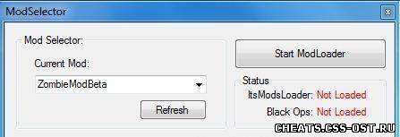 VAC2:Detected(Использовать только в приватных матчах с выключенным VAC.) Версия игры:7.0.36 (узнать свою версию можно в консоле) Описание: С помощью этой программы вы сможите выбирать тот мод, который вам нужен. Как пользоваться: 1) Для начала положите в папку mod/modlist нужный вам мод К примеру: C:\ModSelector\mod\ModList\Название Мода(К примеру Zombie)\maps\mp\gametypes 2) После того как положили мод запускаем ModSelector.exe 3) В строке Current Mod выбираем тот мод, который нам нужен. 4) Нажимаем кнопку Start ModLoader 5) Запускаем Black Ops.