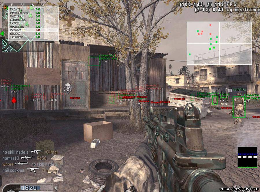 Добро пожаловать вы находитесь в разделе читы для COD 4, как и следует из названия вы сможете тут найти читы для COD 4. Все материалы, предоставленные в данной категории читы для COD 4 принадлежат правообладателям и предназначены только для ознакомления. Администрация сайта с полной уверенностью может сказать, что материалы, предоставленные в данной категории читы для COD 4 полностью «чистые» и не содержат всяческих вирусов или программ способных причинить вред вашему компьютеру. читы для COD 4 предназначены для использования в игре читы для COD 4 различных версий. Также на нашем сайте вы сможете найти много чего интересного.