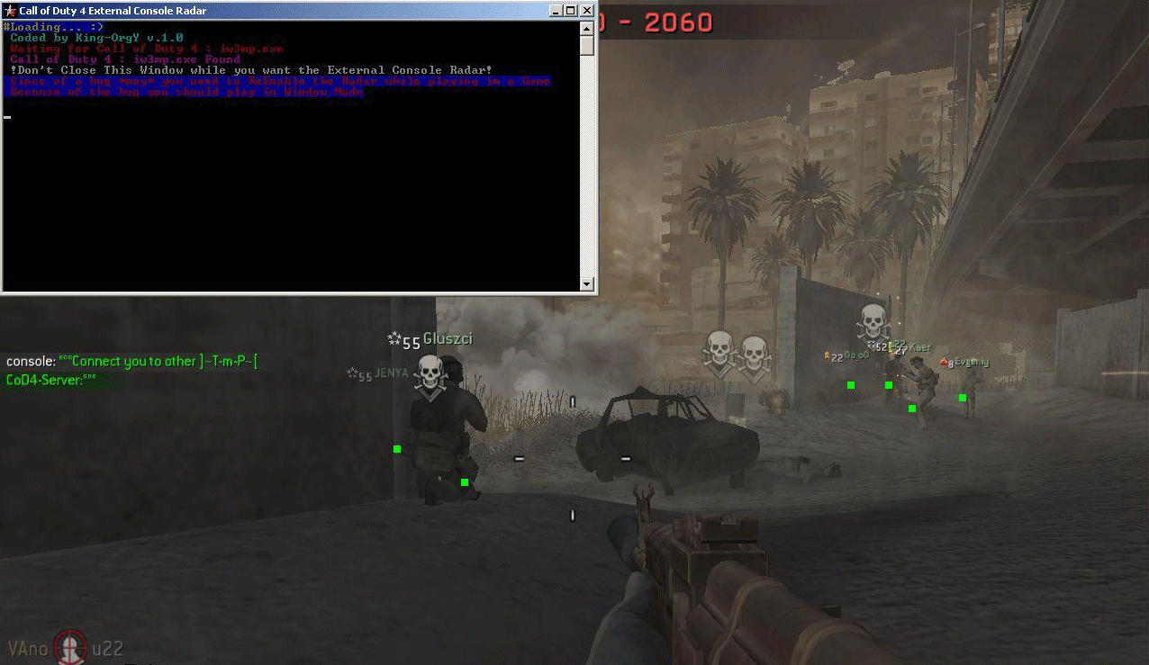 У нас вы сможете найти множество читов. Например читы для COD 4. На данной странице вы найдете читы для COD 4, а именно найдете CoD4 | External Console Radar, чтоб скачать чит CoD4 | External Console Radar бесплатно нажмите на кнопку выше.