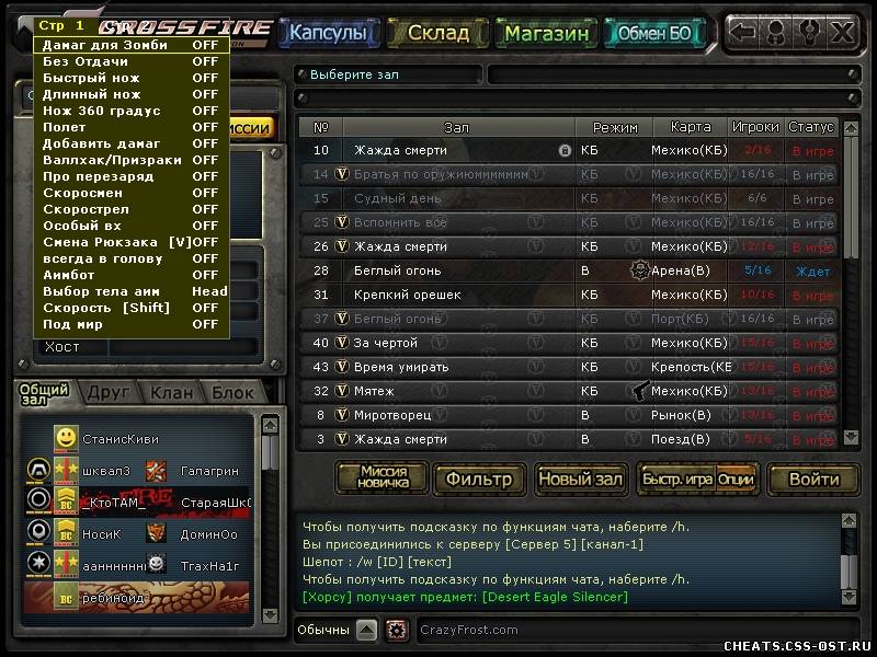 Добро пожаловать вы находитесь в разделе читы для Crossfire, как и следует из названия вы сможете тут найти читы для Crossfire. Все материалы, предоставленные в данной категории читы для Crossfire принадлежат правообладателям и предназначены только для ознакомления. Администрация сайта с полной уверенностью может сказать, что материалы, предоставленные в данной категории читы для Crossfire полностью «чистые» и не содержат всяческих вирусов или программ способных причинить вред вашему компьютеру. читы для Crossfire предназначены для использования в игре читы для Crossfire различных версий. Также на нашем сайте вы сможете найти много чего интересного.