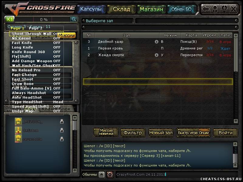Привет всем решил поделится с вами хорошим читом. Который работает на 24.11.2013. И на все ОС (WinXP/Win7/Win8/WinVista) В нём много функций.