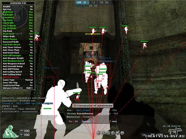 D3D MINOTAVR самый мясной чит с безпалевным дамагом на людей и мутантов,очень мясной чит с огромным функционалом. Кстати он работает на рус, канадке и евро кф. Среди функций данного чита есть безпалевный дамаг на людей и мутантов, сущность его безпалевности в том что можно убирать золотой хед, а в случае надобности поставить silver хед.