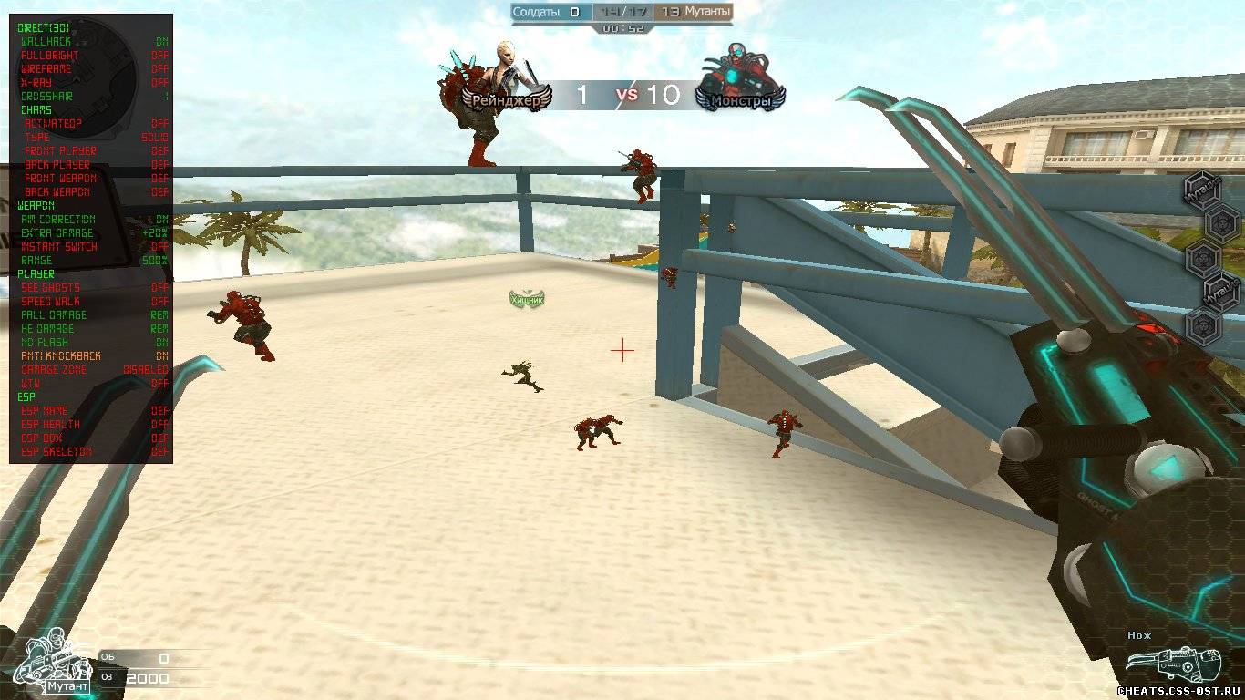 Инструкция: 1)Скачиваем чит, распаковываем на рабочий стол. 2)Открываем от имени администратора (win 7) файл Loader.exe 3)Нажимаем на кнопку «Get Active Here» 4)В окне браузера Explorer открывается сайт, там нажимаем «Click Here To Active Now!» 5)Пропускаем рекламу нажатием кнопки «Skip This Ad» 6)Запускаем игру через patcher_cf 7)Управление: INSERT — вкл./выкл. меню чита, стрелки — вверх/вниз, влево/вправо
