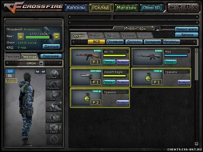 Добро пожаловать вы находитесь в разделе читы для Crossfire, как и следует из названия вы сможете тут найти читы для Crossfire. Все материалы, предоставленные в данной категории читы для Crossfire принадлежат правообладателям и предназначены только для ознакомления. Администрация сайта с полной уверенностью может сказать, что материалы, предоставленные в данной категории читы для Crossfire полностью «чистые» и не содержат всяческих вирусов или программ способных причинить вред вашему компьютеру. читы для Crossfire предназначены для использования в игре читы для Crossfire различных версий. Также на нашем сайте вы сможете найти много чего интересного.