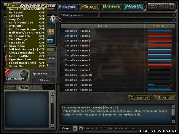 У нас вы сможете найти множество читов. Например читы для Crossfire. На данной странице вы найдете читы для Crossfire, а именно найдете OneHitCF [01.11.2013], чтоб скачать чит OneHitCF [01.11.2013] бесплатно нажмите на кнопку выше.