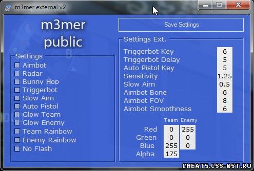 У нас вы сможете найти множество читов. Например читы для cs go. На данной странице вы найдете читы для cs go, а именно найдете M3MER EXTERNAL V2, чтоб скачать чит M3MER EXTERNAL V2 бесплатно нажмите на кнопку выше.
