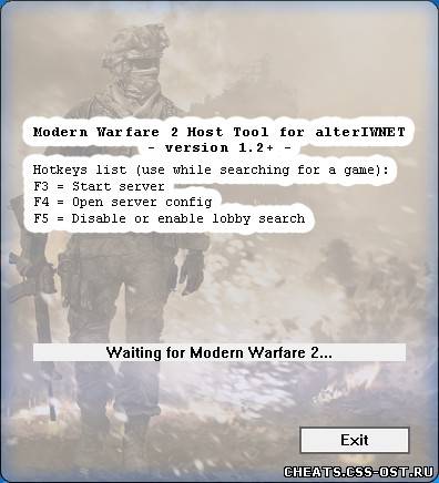 Инструкция: 1) Запустить "mw2_host.exe" от имени администратора (для Vista или Windows 7) 2) Запустить Modern Warfare 2 3) Войдите в лобби, выберите режим игры для поиска Во время поиска игры: 4) Нажмите F5, чтобы включить/выключить бесконечный поиск сервера 5) Нажмите F4 для изменения параметров сервера, как в приватном матче 6) Нажмите F3, чтобы принудительно запустить сервер (во время игры к вам постепенно должны подключаться недостающие игроки)