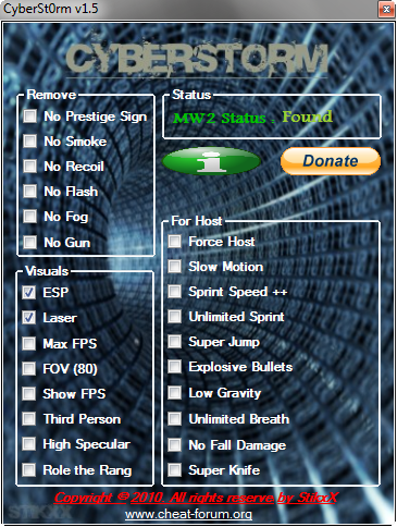 Добро пожаловать вы находитесь в разделе читы для COD MW2, как и следует из названия вы сможете тут найти читы для COD MW2. Все материалы, предоставленные в данной категории читы для COD MW2 принадлежат правообладателям и предназначены только для ознакомления. Администрация сайта с полной уверенностью может сказать, что материалы, предоставленные в данной категории читы для COD MW2 полностью «чистые» и не содержат всяческих вирусов или программ способных причинить вред вашему компьютеру. читы для COD MW2 предназначены для использования в игре читы для COD MW2 различных версий. Также на нашем сайте вы сможете найти много чего интересного.