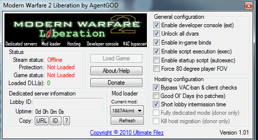 папки должно быть ТОЛЬКО НА АНГЛИЙСКОМ языке!)(или запустить из архива) 1. Запустить MW2_Liberation.exe 2. Настроить как вам нужно. 3. Нажать Load Game(VAC Status: должен быть Not loaded!) 4. Нажать горячие клавиши