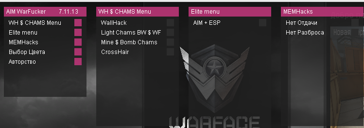У нас вы сможете найти множество читов. Например читы на варфейс. На данной странице вы найдете читы на варфейс, а именно найдете MultiHack AIM WarFucker 7.11.13, чтоб скачать чит MultiHack AIM WarFucker 7.11.13 бесплатно нажмите на кнопку выше.