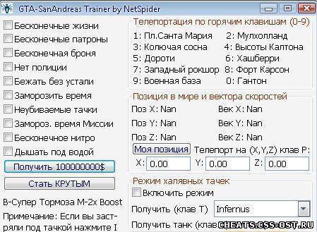 Название:GTA SAN ANDREAS - Trainer Категория:трейнер для gta san andreas Добавил:admin Просмотров:5936 Загрузок:3406 Дата:05.03.2011 Полное описание:перейти